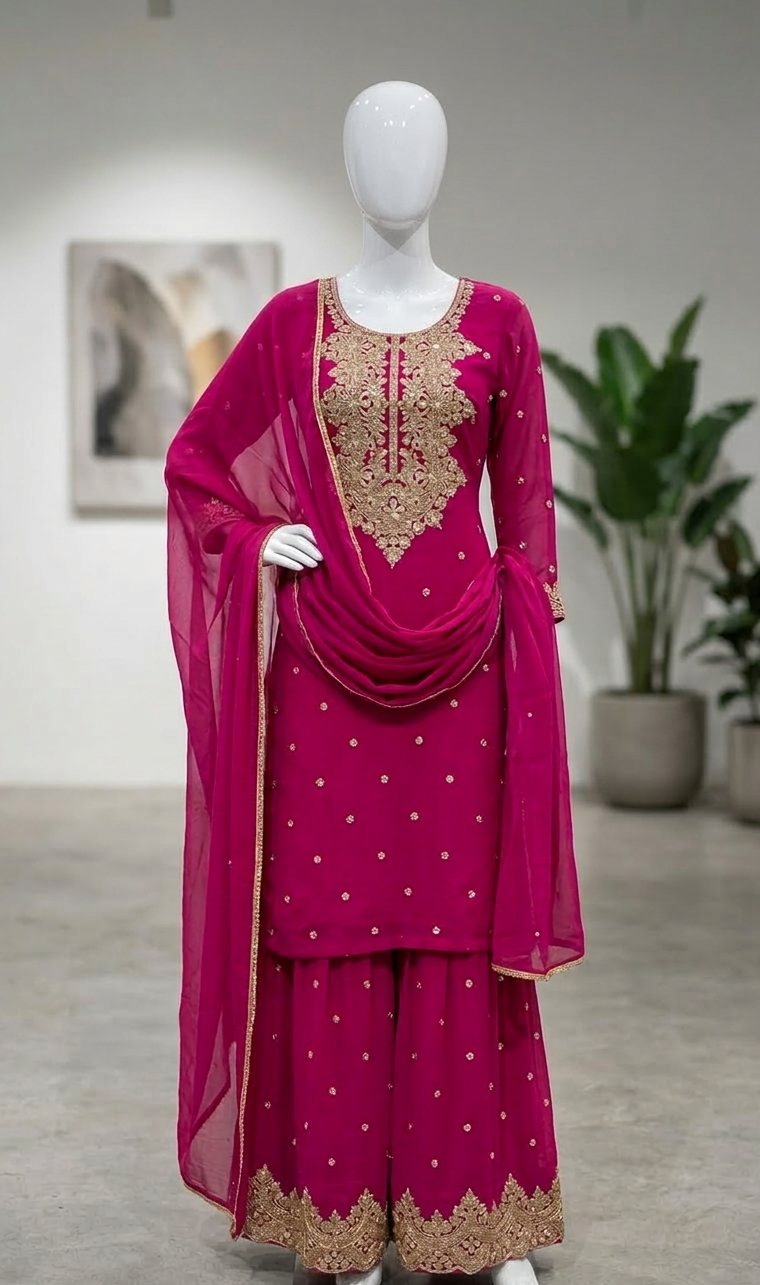 Full Embroidery Sequence work Orna sipon jorjet stone work Body L. Long 44 Garara long 40