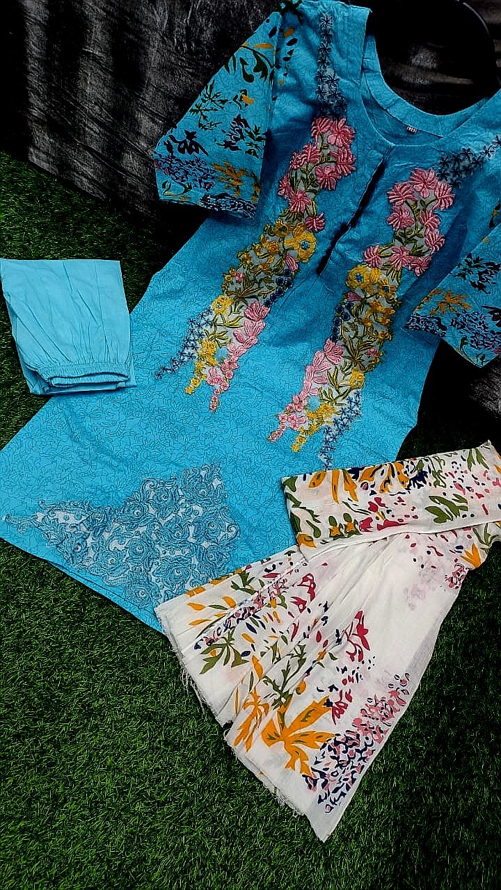 কামিজ কটন সম্পূর্ণ জলছাপ এবং এমব্রয়ডারি কাজ করা ওড়না কটন এমবুস স্কিন প্রিন্ট